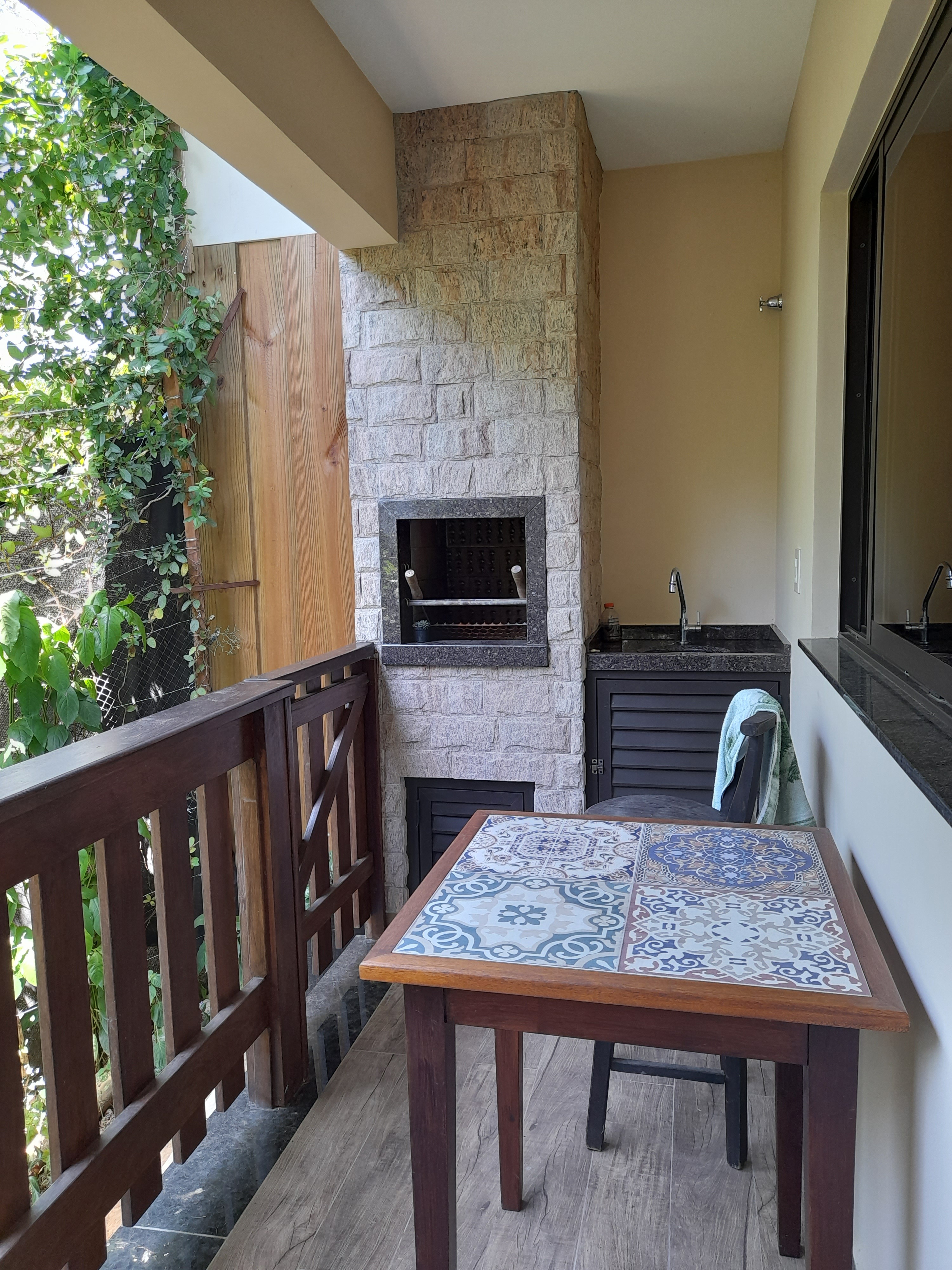 Ao fundo um sobrado com cozinha, sala de estar, lavado, área de serviços, sacada com churrasqueira e no 2⁰ pavimento uma ampla suíte com sacada.